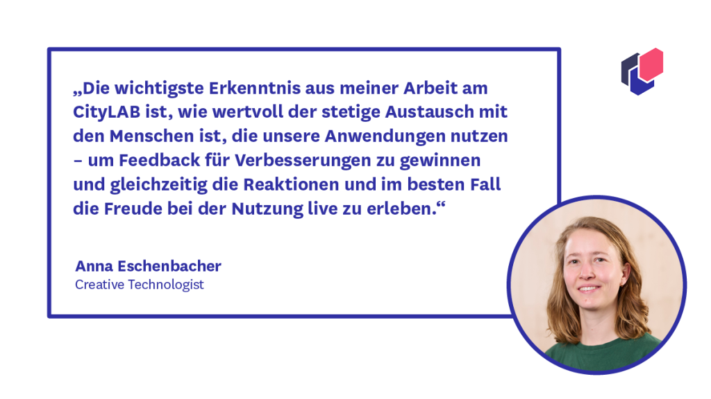 Mit der Serie „Die Köpfe des CityLAB“ stellen wir euch jeden Monat ein Teammitglied vor. Dieses Mal: Anna Eschenbacher, Creative Technologist im CityLAB.